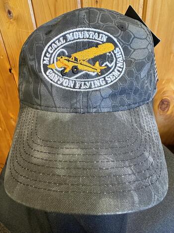 This t-shirt features our signature logo (over the chest) on the front, and on the back is a picture of an airplane flying over the Idaho backcountry with the words “Fly the Idaho backcountry” “Soldier Bar, Frank-Church River of No Return Wilderness”.